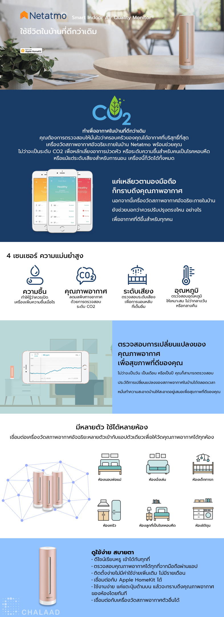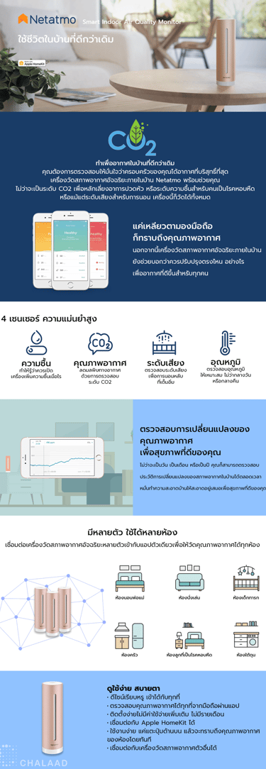 เชื่อมต่ออุปกรณ์ตรวจสอบคุณภาพอากาศภายในอาคารอัจฉริยะหลายเครื่องเพื่อตรวจสอบข้อมูลจากทุกห้องของคุณในแอพเดียว